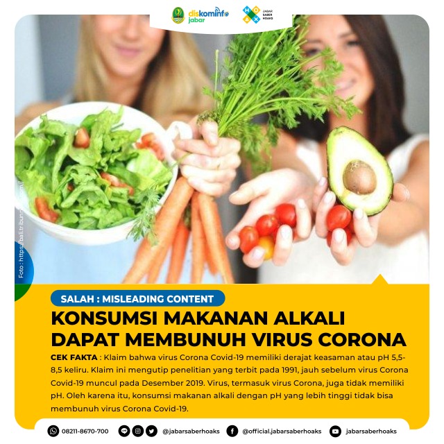 Jabar Saber Hoaks On Twitter Konsumsi Makanan Alkali Dapat Membunuh Virus Corona Misleading Content Beredar Pesan Berantai Yang Menyebut Virus Corona Covid 19 Memiliki Derajat Keasaman Ph 5 5 8 5 Https T Co V4wthfpi66 Twitter
